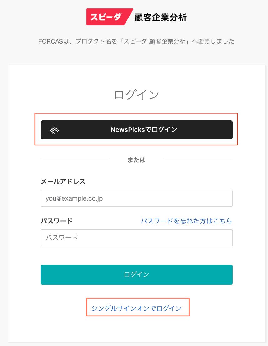 スピーダ 顧客企業分析へは、NewsPicks ID もしくはシングルサインオンにてログインを行います。
