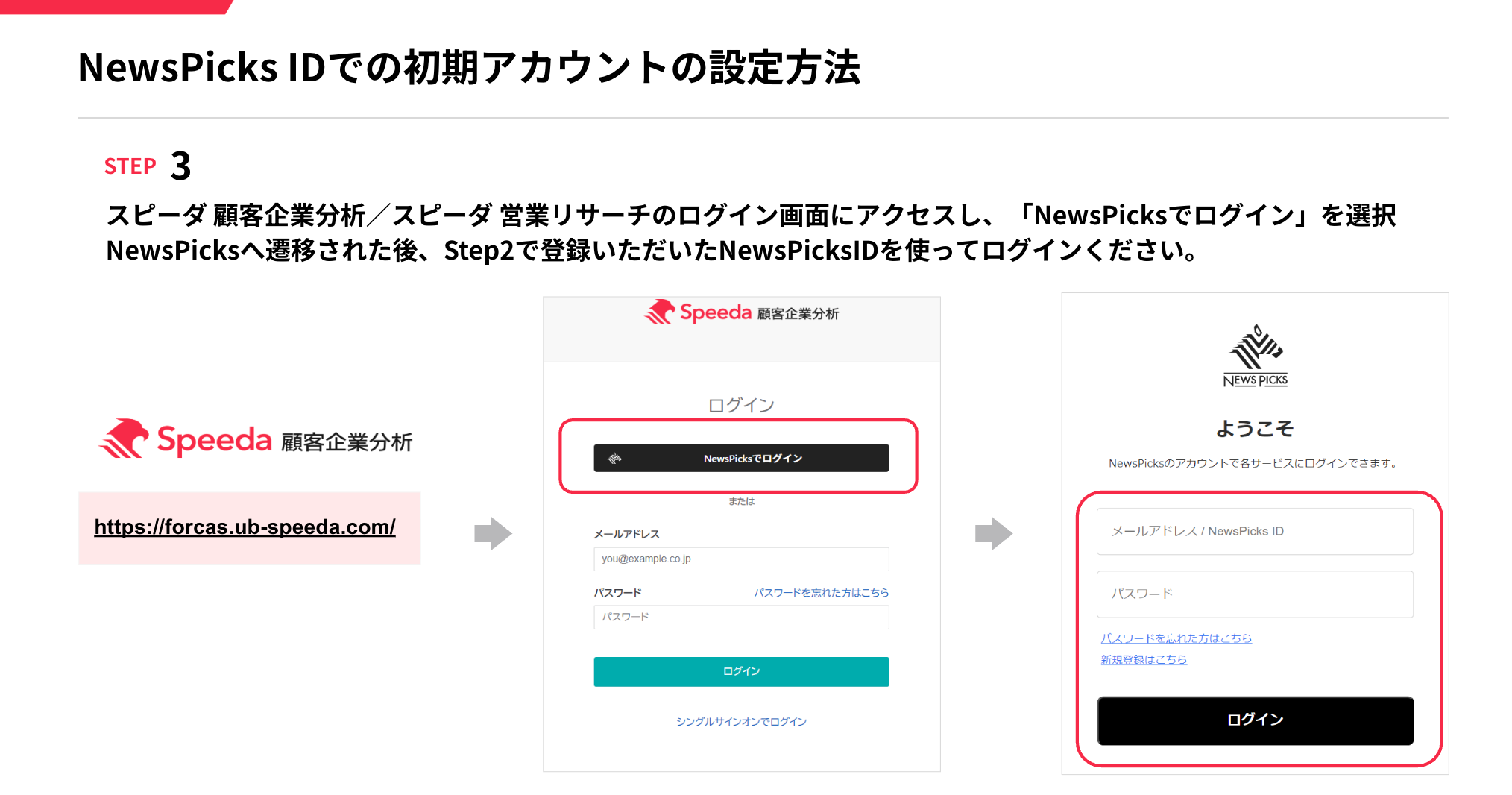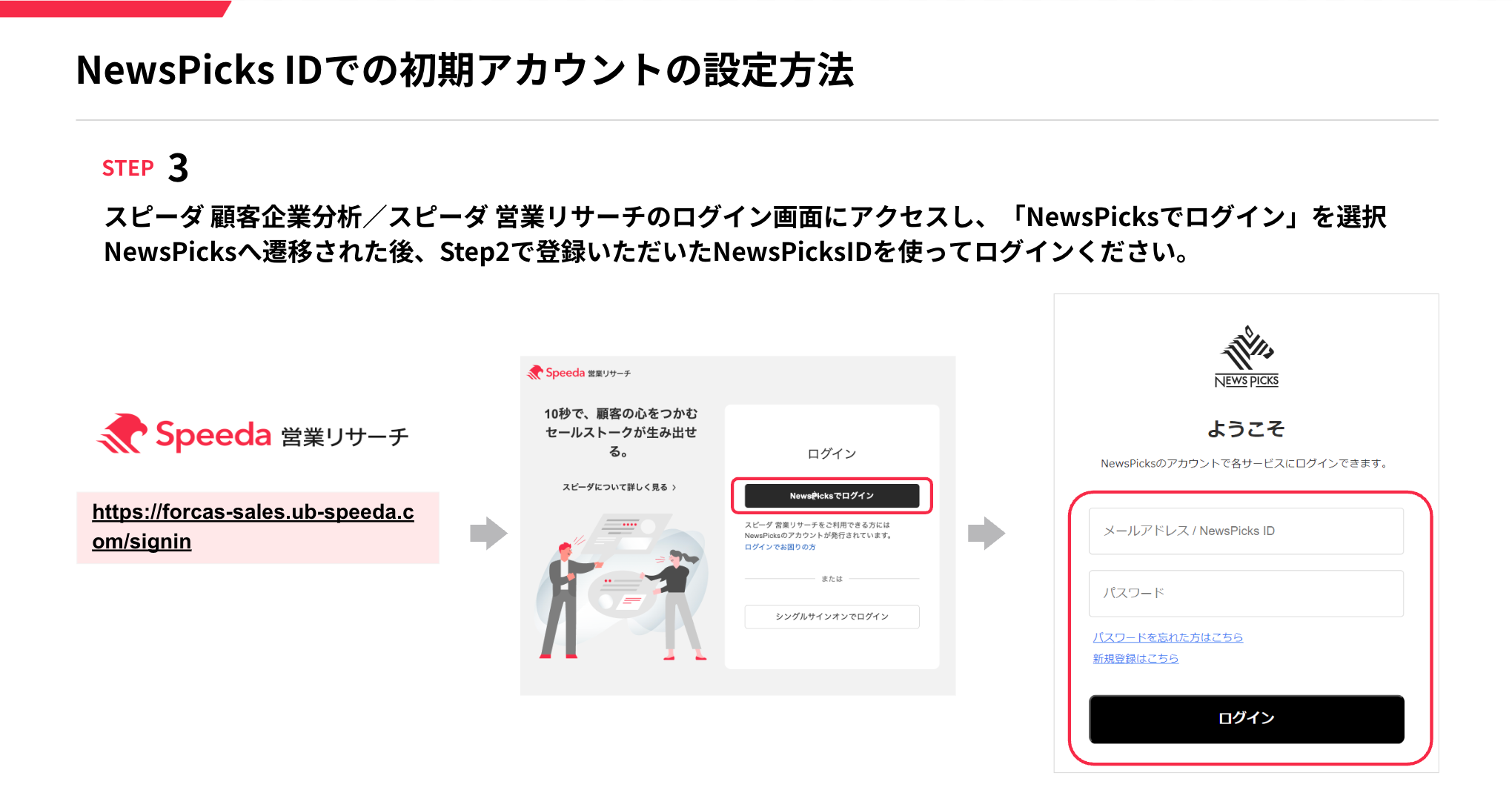 A:NewsPicks ID のログインパスワードをお忘れの場合は、 NewsPicksにてパスワードをリセットのうえ、再度 Step2の⼿順をお進みください。