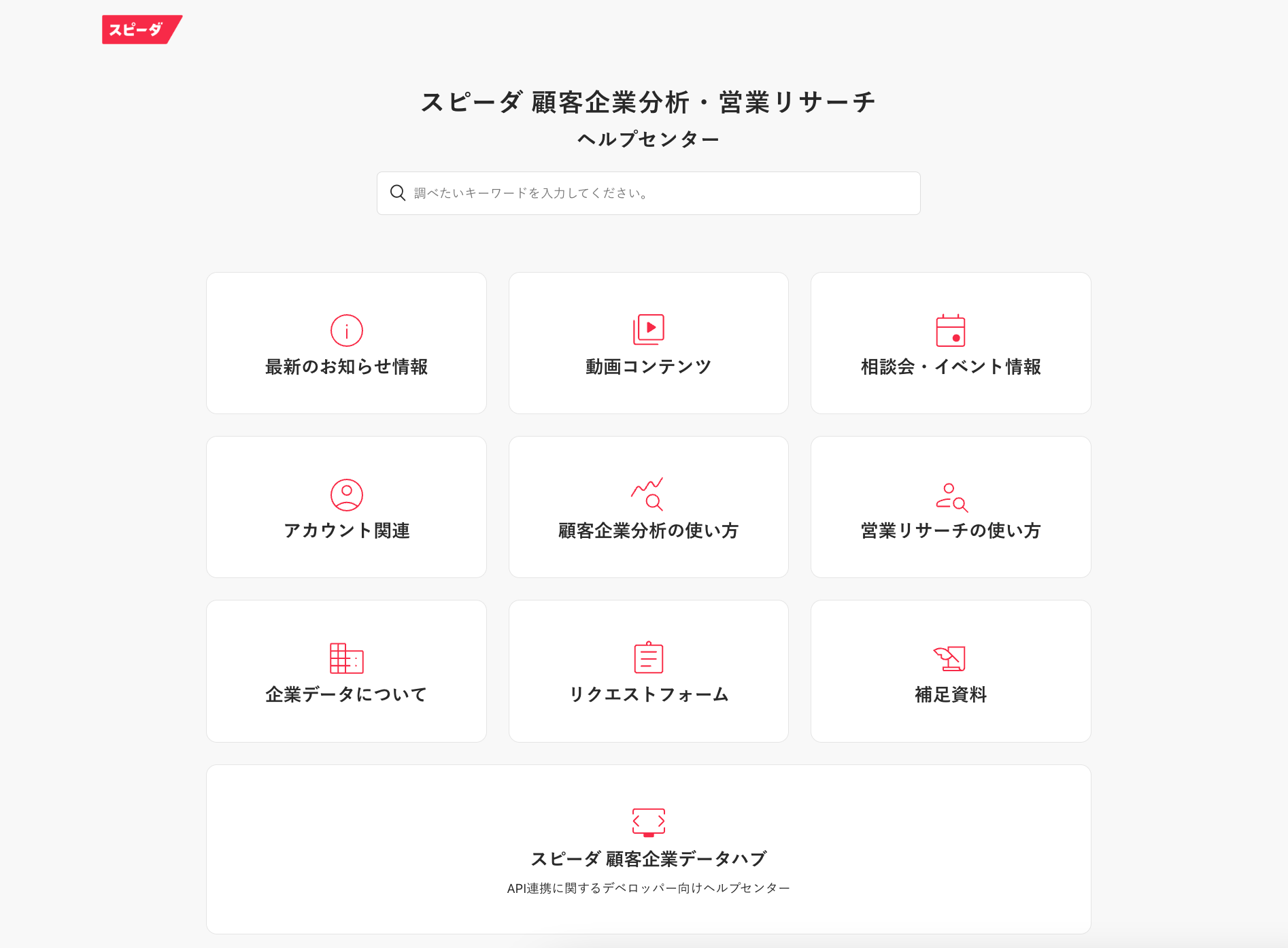 - スピーダ 顧客企業分析と営業リサーチでヘルプセンターを統合いたしました。