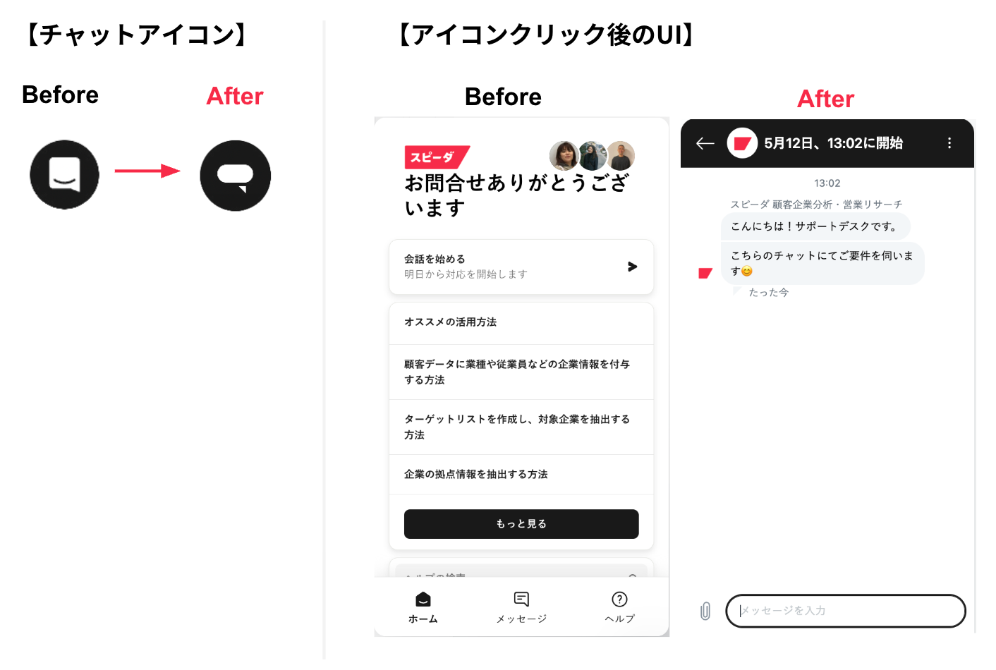 ブラウザにキャッシュが残ることで、リニューアル後のヘルプセンターおよびチャットアイコンが表示されない場合がございます。お手元の環境にログイン後、添付写真Afterの画面になっていない方は、お手数ですが一度ログアウトのうえキャッシュの削除を行い、再度ログインをお試しください。