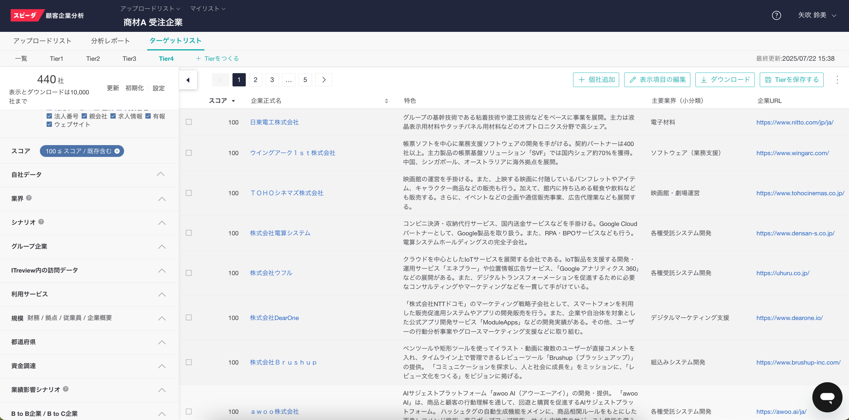 スピーダ 顧客企業分析が保有する企業情報を付与する(データエンリッチ)をはじめ、目的に応じた分析(受注企業の分析、解約企業の分析、マーケティング施策で獲得したリードの分析)を行うことで、様々な場面でご利用いただけます。