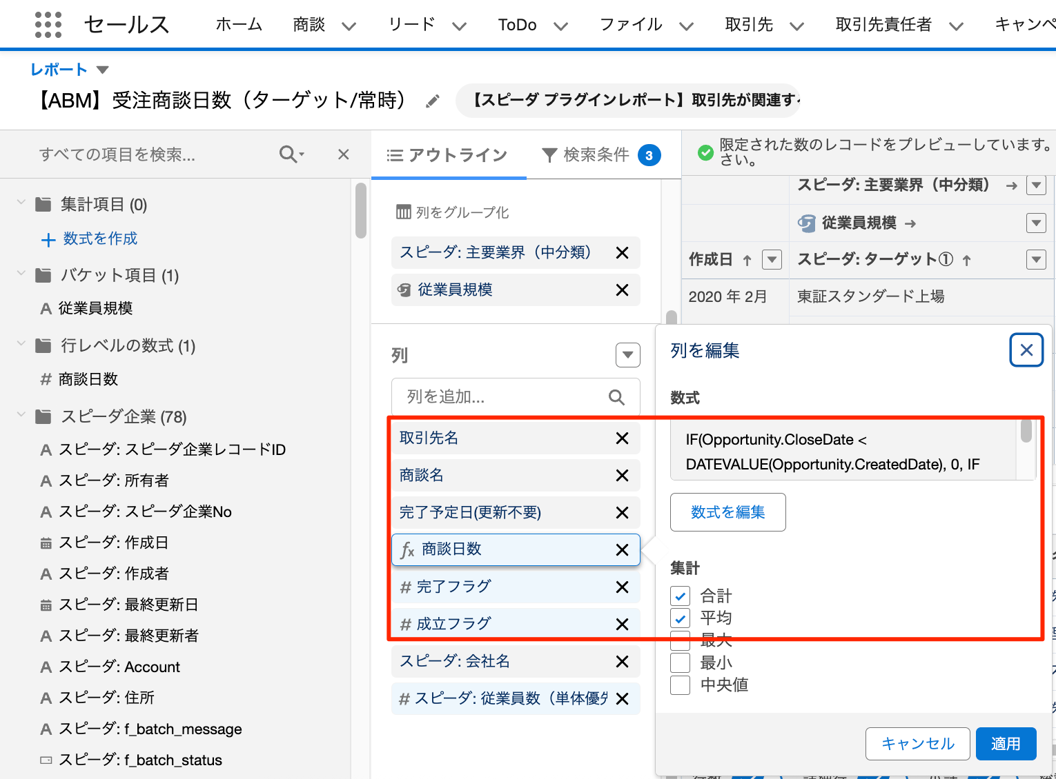 商談の受注日数などが表示されない場合、商談オブジェクトの利用方法をご確認ください。