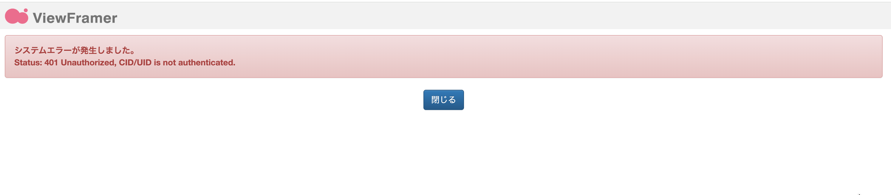 商談資料作成後、資料ダウンロードの画面にて以下エラーが発生した場合、Salesforce >OPROARTS Connector v2 > [OPROARTS]タブ>全ユーザ出力 (ALA)で設定している認証情報CID, UID, UPWが異なる可能性があります。