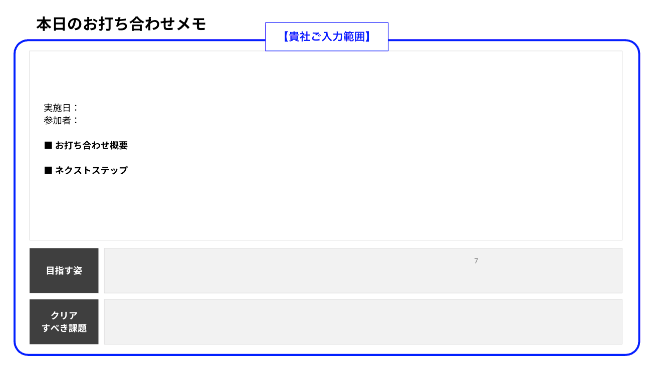 - 当日のお打ち合わせメモを資料内に記載